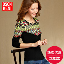 欧尚珂妮 2017春装新款民族风印花长袖女t恤 女士打底衫 女上衣