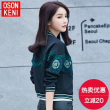 2017春装新款拼色前卫刺绣罗纹棒球衫立领女长袖短外套女春