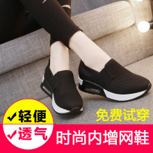 休闲女鞋2017夏季新款厚底内增高网鞋懒人鞋女透气运动气垫网面鞋