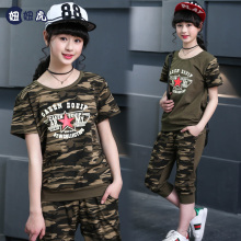 女童夏装迷彩服2017新款儿童中大童二件套12学生装15夏季迷彩套装