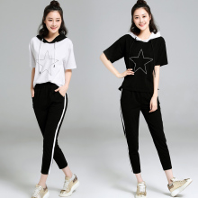 2017夏装短袖T恤九分小脚裤大码女装休闲两件套装运动服时尚套装