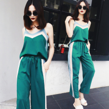 优雅街头2017年夏季+纯色条纹裤套装/套裙时尚气质吊带