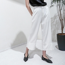 Mint工坊春夏裤脚百褶高腰九分直筒阔腿裤子 女士休闲裤2017春季