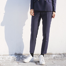 Mint春夏后不对称藏青灰色黑色休闲裤子小脚九分西装裤 烟管裤女