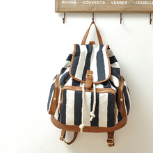 外贸时尚清新文艺范儿条纹帆布背包 休闲学院风女双肩包包