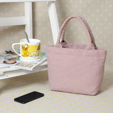 日单 甜美粉色毛呢编织小巧手提女便当包 可爱手拎包环保饭盒袋