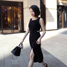dalustudio2016夏季新款女装性感镂空显瘦小黑裙连衣裙夏小清新女
