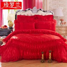 珍罗兰纯绵家纺贡缎婚庆大红九件套套件结婚床上用品纯色多件套