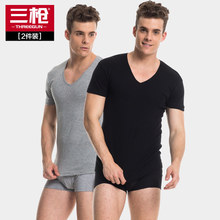 2件装三枪打底衫 夏季男纯棉V领短袖修身T恤紧身弹力大码全棉汗衫