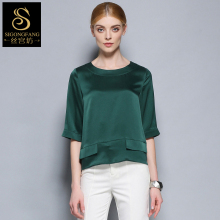 2017夏季新款中老年重磅真丝上衣短袖衬衣宽松桑蚕丝妈妈女装T恤