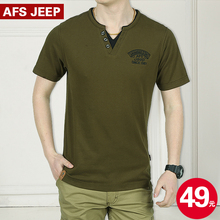 AFS JEEP短袖t恤男夏季宽松大码男士纯棉v领半袖打底衫潮韩版体恤