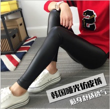 春秋踩脚裤皮裤女长裤外穿仿皮打底裤女春秋薄款小脚裤大码紧身裤