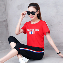 休闲运动套装女2017夏季时尚韩版显瘦短袖短裤七分裤两件时尚套装