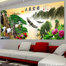 迎客松十字绣新款客厅山水画印花 大展宏图正品2米十字绣仙鹤版