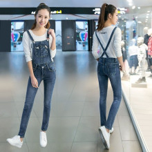2017夏秋新款韩版修身可拆卸弹力牛仔背带裤女长裤学生休闲吊带裤