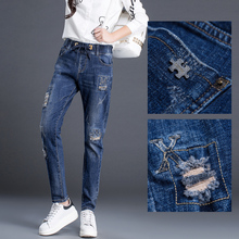 16岁韩版12少女装14九分13春装初中学生15女孩宽松牛仔长裤大童17