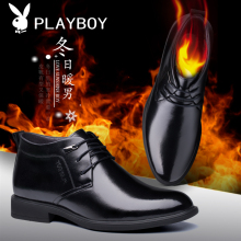 花花公子男鞋冬季商务休闲皮鞋男真皮英伦系带加绒保暖高帮棉靴子