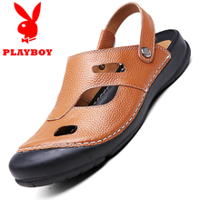 花花公子男鞋夏季男士凉鞋包头休闲鞋牛皮沙滩鞋男真皮厚底凉拖鞋