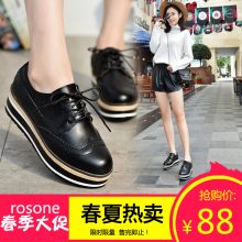Rosone 春秋韩版布洛克小皮鞋厚底松糕女鞋增高休闲鞋女加绒