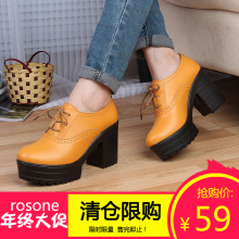 Rosone坡跟女鞋英伦女鞋休闲鞋坡跟单鞋真皮厚底松糕鞋女R02