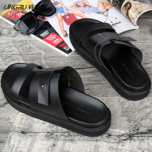 一字拖鞋男夏季英伦厚底防臭真皮凉拖个性简约增高沙滩鞋潮流凉鞋