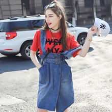 2017春夏新款韩国修身优雅系腰带中长款百搭显瘦背带牛仔半身裙女