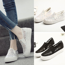 春夏帆布鞋女懒人一脚登透气性感蕾丝厚底舒适学生鞋凉鞋