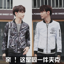 2016秋季新款青少年韩版修身两面穿迷彩夹克男士外套棒球服男装潮