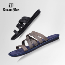夏季新品欧美时尚罗马条纹轻便沙滩一字拖真皮透气居家男凉鞋凉拖