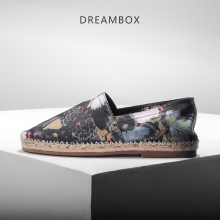 钧博新款时尚欧美一脚蹬懒人鞋乐福鞋中国风蝴蝶草编渔夫鞋休闲鞋