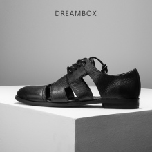 夏季新品英伦时尚罗马潮男沙滩拖真皮缝线居家镂空系带透气男凉鞋