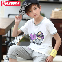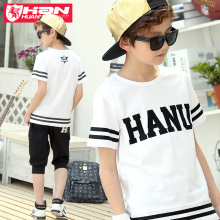 华诺大童运动套装2017夏装男童套装10岁短袖中裤两件套小孩衣服