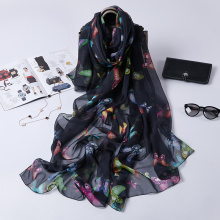 黑色蝴蝶高档女士真丝围巾桑蚕丝丝巾长款纱巾披肩春秋冬季韩国