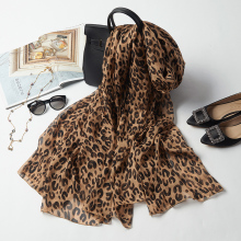 高档豹纹真丝围巾桑蚕丝丝巾女士百搭长款纱巾披肩春秋冬季韩国薄