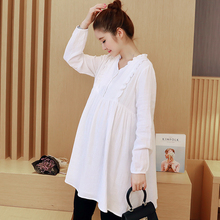 孕妇衬衫女长袖2017春装新款时尚中长款宽松韩版白色衬衫裙上衣