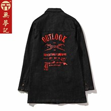 無梦记原创国风潮流印花男士中长款牛仔风衣外套大码男青年夹克衫