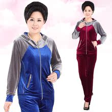 2016春装新款中老年女装金丝绒套装大码妈妈装春秋运动卫衣外套