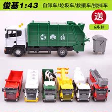 俊基1:43垃圾车/消防车/翻斗车搅拌车合金汽车模型儿童玩具工程车