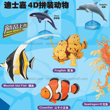立体4D拼装海洋动物模型玩具鲨鱼海豚珊瑚鱼小丑鱼鲸鱼海马海龟