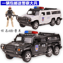 1:32警车玩具车模合金属地带6轮悍马越野仿真声光可开门儿童礼物