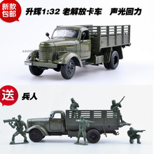 升辉老解放卡车模型合金车模军车收藏仿真汽车回力声光儿童玩具车