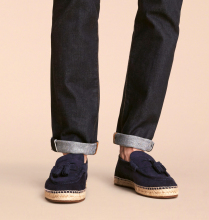 R.disdain复古绅士 磨砂小羊皮一脚蹬麻绳草编浅口休闲厚底流苏鞋