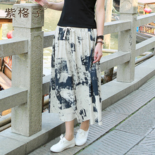 紫格子2017新款女裤亚麻五分裤女宽松显瘦大码休闲裤韩版阔腿中裤
