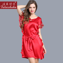 法莱舒卡真丝睡衣100%桑蚕丝大码连衣裙夏优雅女士休闲家居服睡裙