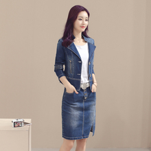 2017春秋装新款韩版修身显瘦牛仔两件套装时尚气质牛仔短裙外套女