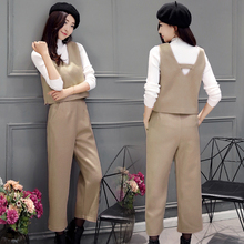 时尚套装女2017气质潮秋装新款中长款西装马甲背心阔腿裤两件套装