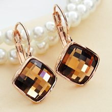 新款水晶方耳环耳饰 时尚韩版镀金防过敏耳坠首饰生日礼物耳扣