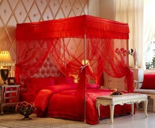 艾巢 不锈钢三开门落地式宫廷蚊帐大红色婚庆蚊帐1.5/1.8床