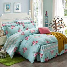 艾巢韩版床裙纯棉四件套 全棉婚庆床品床笠床罩式公主特价