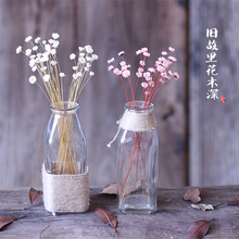 【玻璃心】手工麻绳玻璃小花瓶透明干花花瓶五彩插花装饰品摆件瓶